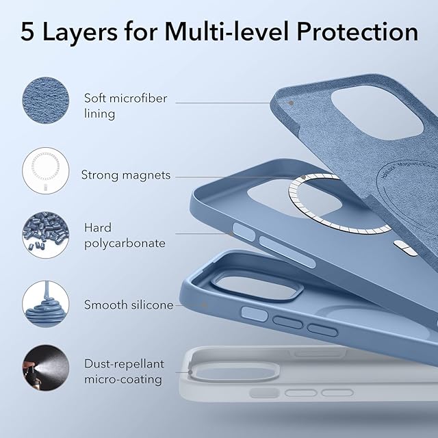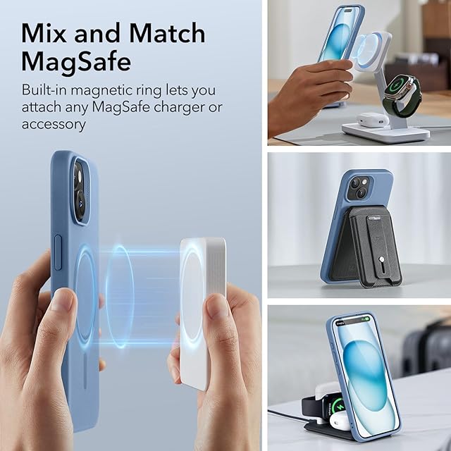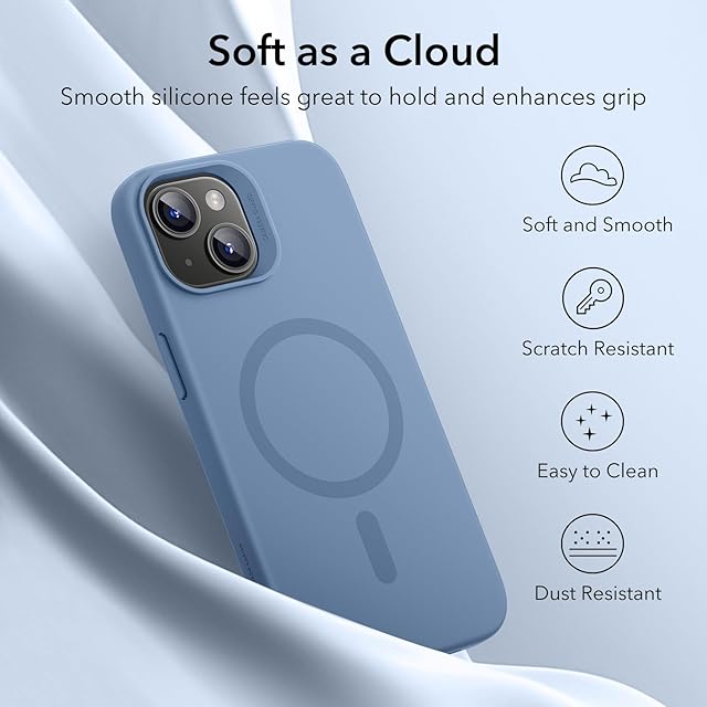 ESR for iPhone 15 ケース MagSafe付き マグネット充電対応 スリム シリコンケース 衝撃吸収 画面とカメラ保護 Cloudシリーズ ウインターブルー