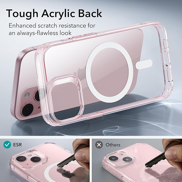 【米軍MIL規格・Magsafe対応】ESR iPhone 15 ケース ワイヤレス充電対応 耐衝撃 iPhone15 ケース 傷防止 黄ばみ防止 アイフォン15 ケース 対応 磁気 スマホケース iPhone15ケース Classicシリーズ クリアピンク