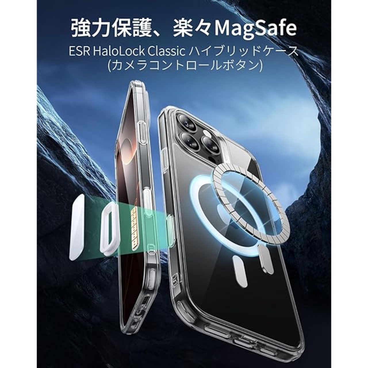 商品名:ESR いPhone16Pro ケース【カメラコントロール・米軍MIL規格】傷に強い背面 ワイヤレス充電 ストラップホール付き iPhone 16 Pro ケース 耐黄変 耐衝撃 iPhone 16pro Magsafe対応 HaloLock搭載 ハイブリッド磁気カバー クリア_グレー