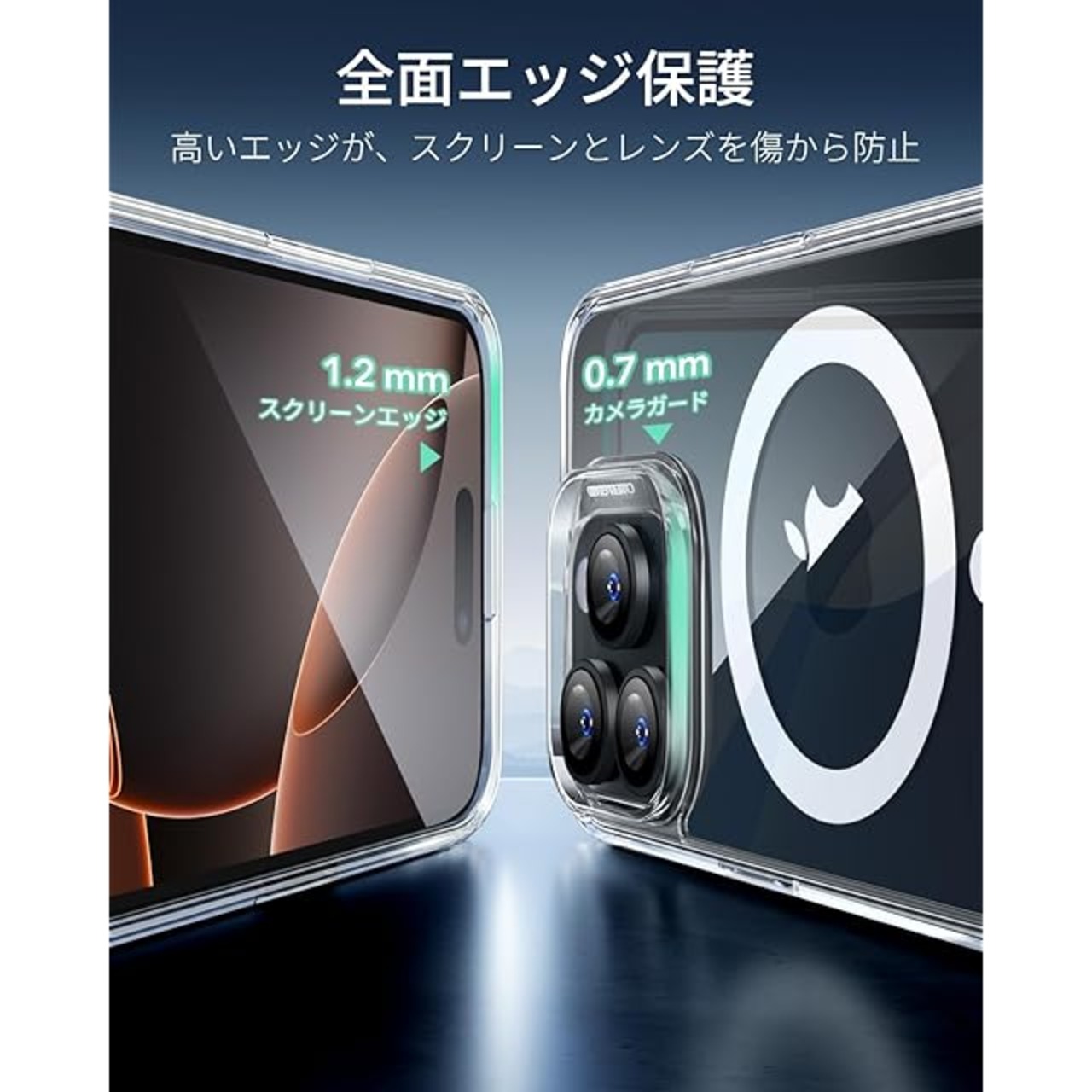【ズレない・外れない!最強マグネット〈1,500gの保持力〉】 業界トップクラスの強力磁力(1,500gの保持力)を内蔵した いPhone16Pro ケースです!MagSafeワイヤレス充電器やアクセサリーが瞬時に「ピタッ」と吸着するため、満員電車や急いでいる時でも位置調整の手間が不要です。充電中のずれ落ちやアクセサリーの外れが心配ない設計で、移動中やアウトドアでの利便性が格段に向上します 【軍事レベル基準!衝撃から守る全方位ガード】
