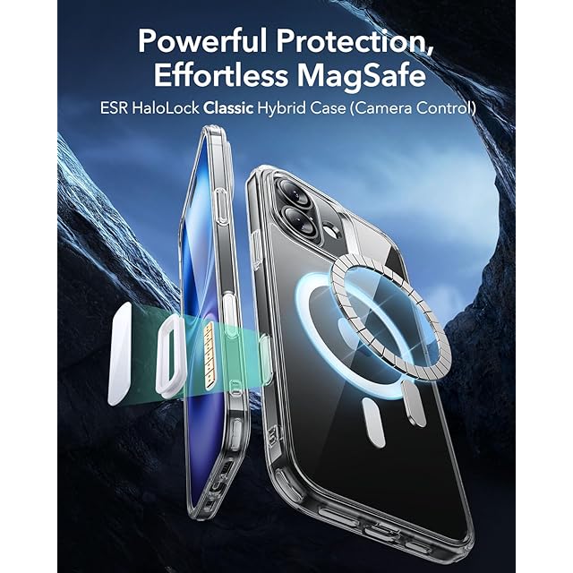 ESR iPhone 16 ケース【カメラコントロール・Magsafe対応】 傷に強い背面 ワイヤレス充電 ストラップホール付き iPhone16 ケース 耐黄変 耐衝撃マグネット いphone16対応 HaloLock搭載 ハイブリッド磁気アイフォン16 クリア_ブルー