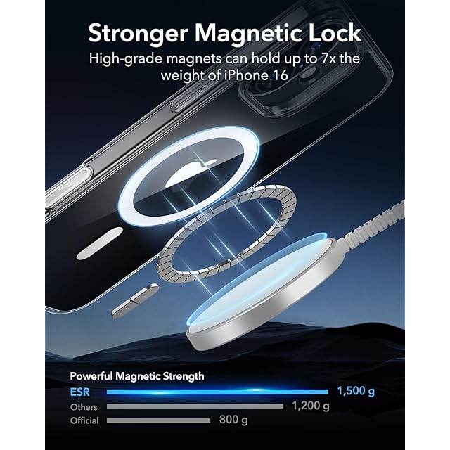 ESR iPhone 16 ケース ワイヤレス充電対応 耐黄変 耐衝撃 iPhone16用マグネットスマホケース iPhone16 ケース対応 アイフォン16 ケース いphone16 ケース対応 Classic ハイブリッドケース(HaloLock) クリア_ブルー