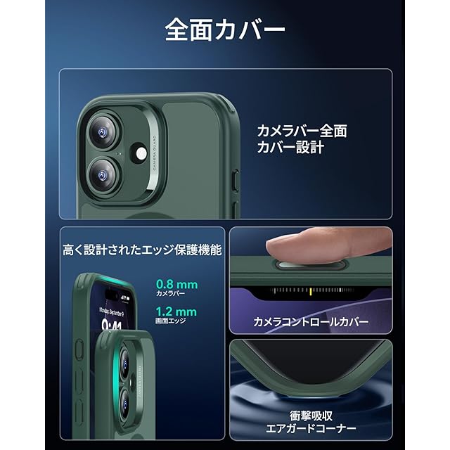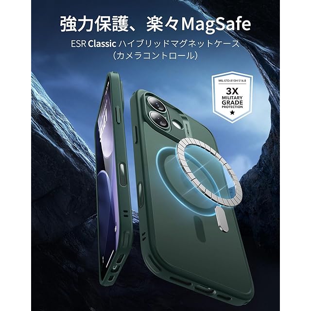 商品名:【3倍米軍MIL規格・MagSafe対応】ESR iPhone 17 ケース ワイヤレス充電 iphone17用 カメラボタン付き SGS認証 エアガードコーナー 黄変防止 耐衝撃 PC背面TPUバンパー 指紋防止 高耐久性 マグネットスマホケース Qi2.2対応 最大25W高速充電 マグセーフ いphone17ケース アイフォン17専用Classicシリーズ(フロストグリーン)