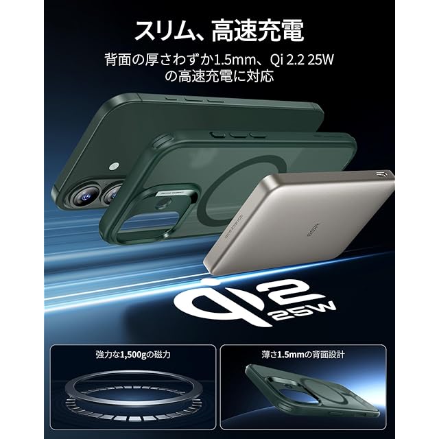 【ズレない・外れない!最強マグネット〈1,500gの保持力〉】 業界トップクラスの強力磁力(1,500gの保持力)を内蔵した いphone17ケースです!MagSafeワイヤレス充電器やアクセサリーが瞬時に「ピタッ」と吸着するため、満員電車や急いでいる時でも位置調整の手間が不要です。充電中のずれ落ちやアクセサリーの外れが心配ない設計で、移動中やアウトドアでの利便性が格段に向上します