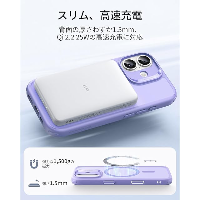 商品名:【3倍米軍MIL規格・MagSafe対応】ESR iPhone 17 ケース ワイヤレス充電 iphone17用 カメラボタン付き SGS認証 エアガードコーナー 黄変防止 耐衝撃 PC背面TPUバンパー 指紋防止 高耐久性 マグネットスマホケース Qi2.2対応 最大25W高速充電 マグセーフ いphone17ケース アイフォン17専用Classicシリーズ(フロストパープル)