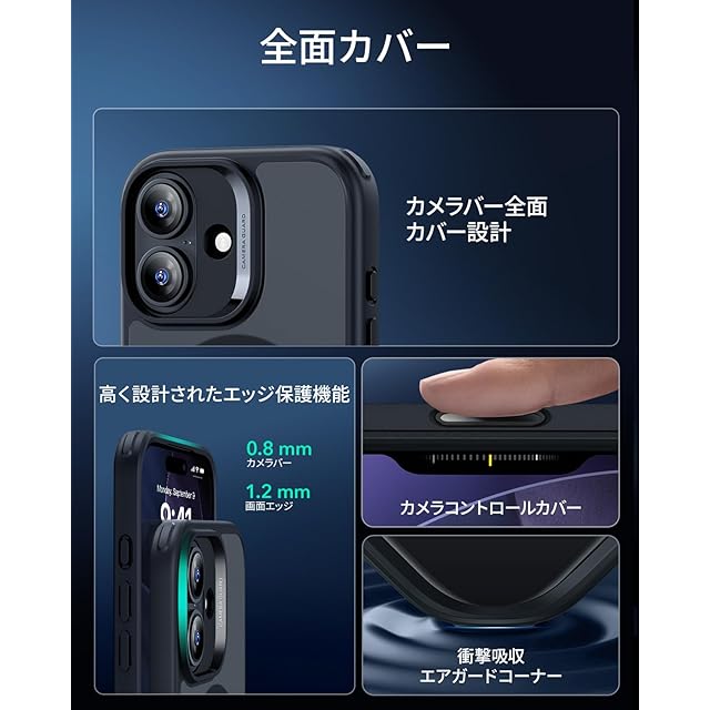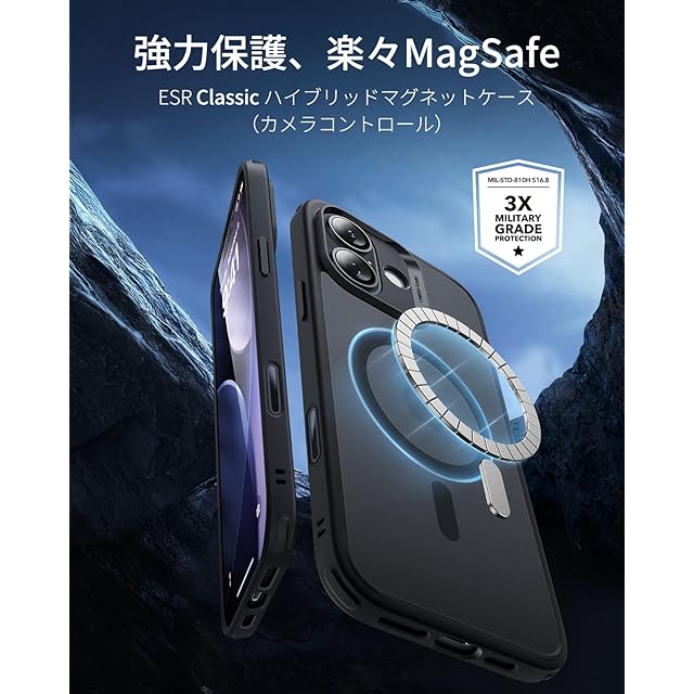 商品名:【3倍米軍MIL規格・MagSafe対応】ESR iPhone 17 ケース ワイヤレス充電 iphone17用 カメラボタン付き SGS認証 エアガードコーナー 黄変防止 耐衝撃 PC背面TPUバンパー 指紋防止 高耐久性 マグネットスマホケース Qi2.2対応 最大25W高速充電 マグセーフ いphone17ケース アイフォン17専用Classicシリーズ(フロストブラック)