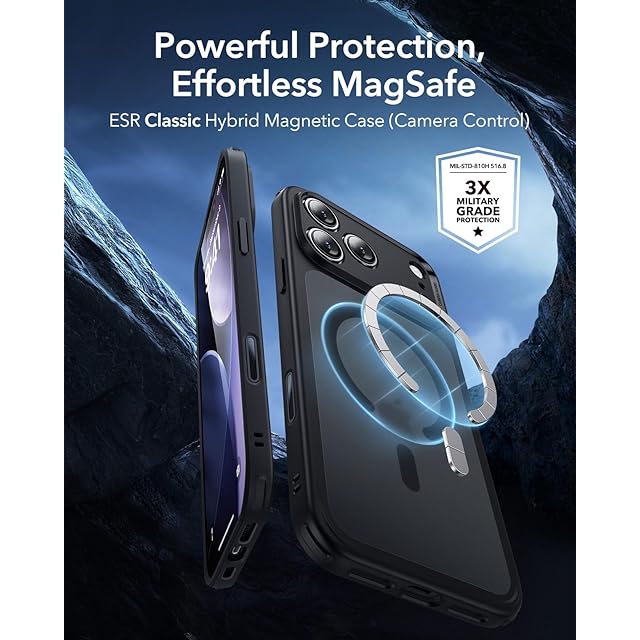 【3倍米軍MIL規格・MagSafe対応】ESR iPhone 17 Pro Max ケース ワイヤレス充電 カメラボタン付き SGS認証 エアガードコーナー 黄変防止 耐衝撃 PC背面TPUバンパー 指紋防止 高耐久性 マグネット Qi2.2対応 最大25W高速充電 マグセーフ いphone17promaxケース アイフォン17プロマックス専用Classic(フロストブラック)