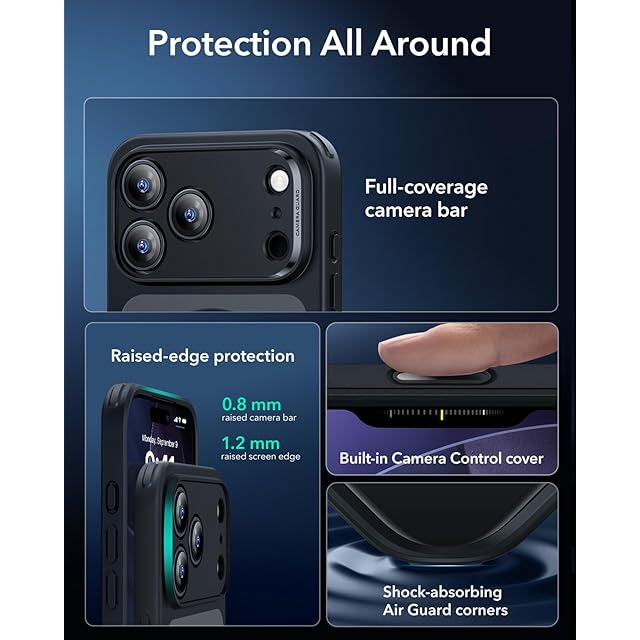 商品名:【3倍米軍MIL規格・MagSafe対応】ESR iPhone 17 Pro Max ケース ワイヤレス充電 カメラボタン付き SGS認証 エアガードコーナー 黄変防止 耐衝撃 PC背面TPUバンパー 指紋防止 高耐久性 マグネット Qi2.2対応 最大25W高速充電 マグセーフ いphone17promaxケース アイフォン17プロマックス専用Classic(フロストブラック)