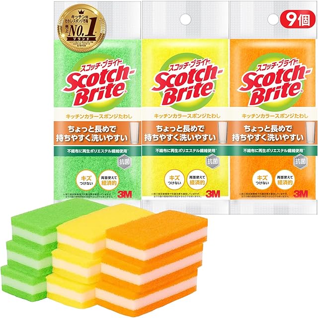 【.co.jp限定】 3M スポンジ キッチン キズつけない 抗菌 ロング 9個 スコッチブライト SS-74K 9P A