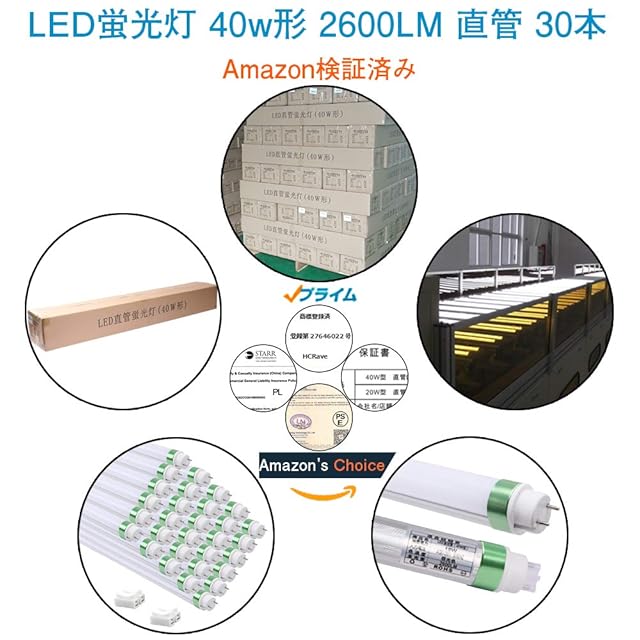 商品名:コスパ良し 省エネ LEDランプ 蛍光灯 40W型 昼光色 6000K 昼白色寄りの青み控えめ明るい白色 高輝度 2600LM 低消費電力18W 低発熱型 耐久性G13口金 120cm 1198mm led 直管 蛍光管 高天井照明ライト エコ 電磁波ノイズ対策済み グロー式工事不要 PL保険加入済 2年 30本入り