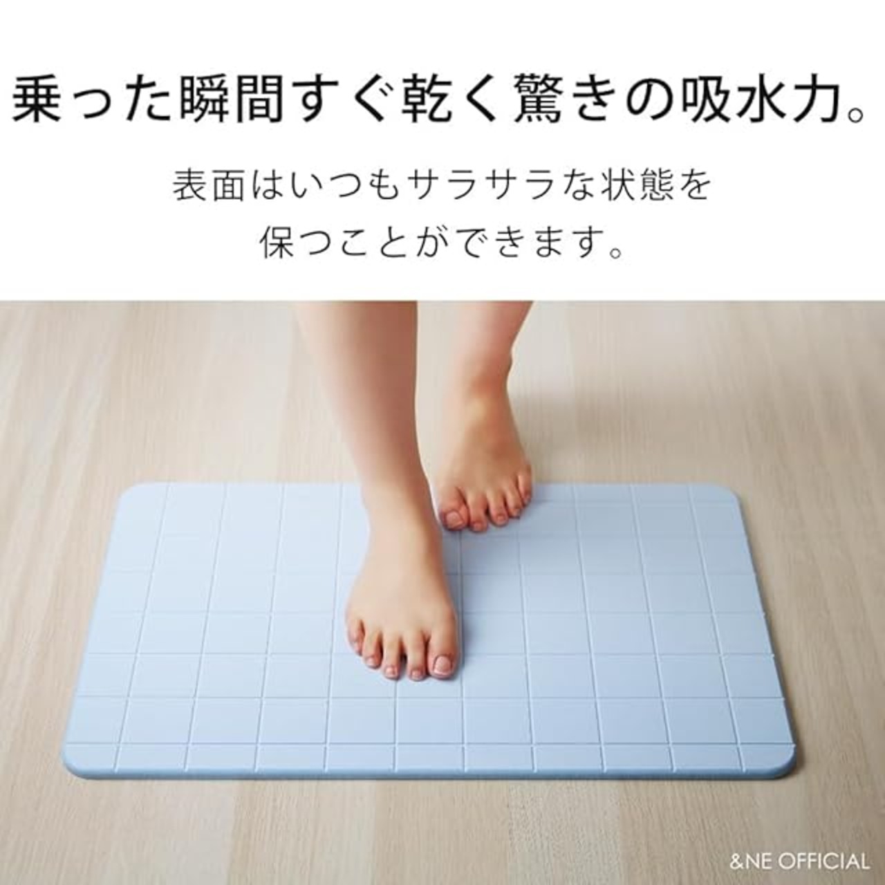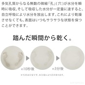すぐ乾く驚きの吸水力。珪藻土が気持ちよく水分を吸い取り、いつもサラサラな状態を保つことができます。表面はいつもサラサラ。毎日のお洗濯やお手入れは不要です。