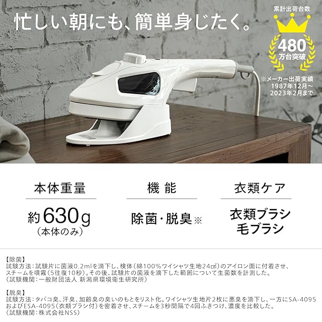 【高温・パワフルスチームで除菌&脱臭】繊維の奥に潜んだについたタバコ臭や料理臭などのニオイはもちろん、なかなか洗濯のできないカーテンやソファなどの家具の脱臭・除菌もおすすめです。また、高温のスチームは繊維自体の復元力を手助けするため、伸びてしまったニットの肘や袖の伸びにも効果的です。