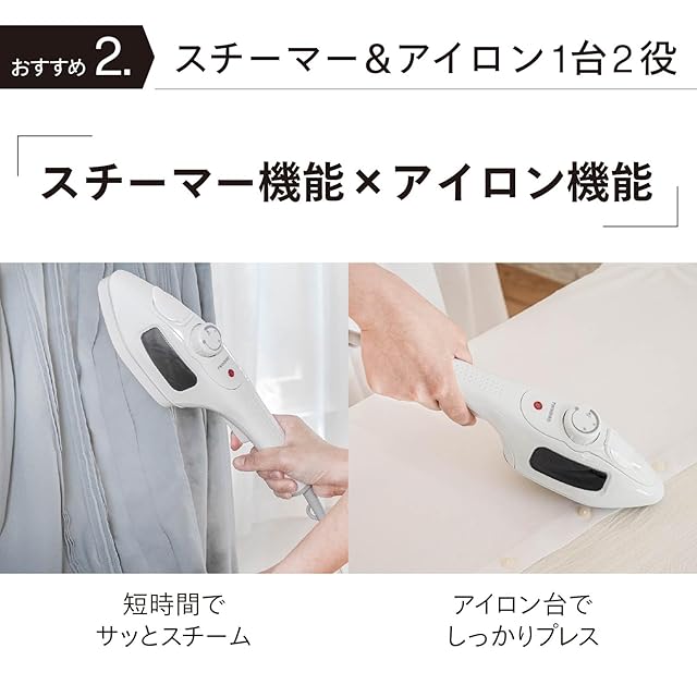 【面倒なシワ伸ばしもあっという間に】ハンディーアイロン&スチーマーを使えば、あっという間に衣類のシワ伸ばしが完了します。ハンガーにかけたまま使用でき、朝の忙しい時にも短時間でサッとシワ伸ばし。