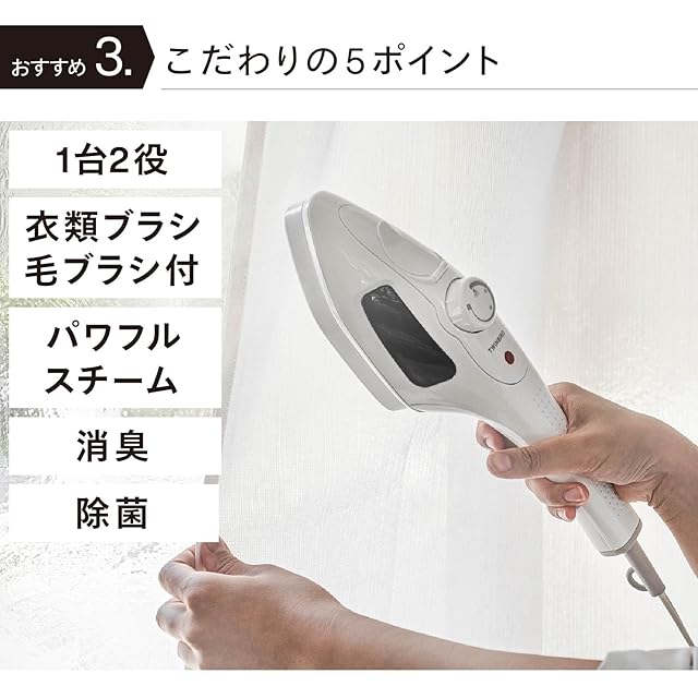 TWINBIRD(ツインバード) 衣類スチーマー スチームアイロン 除菌 脱臭 パワフルスチーム 3段階温度調節 ハンガーにかけたまま シワ伸ばし 一人暮らし 新生活 プレス ホワイト ESA-4095W