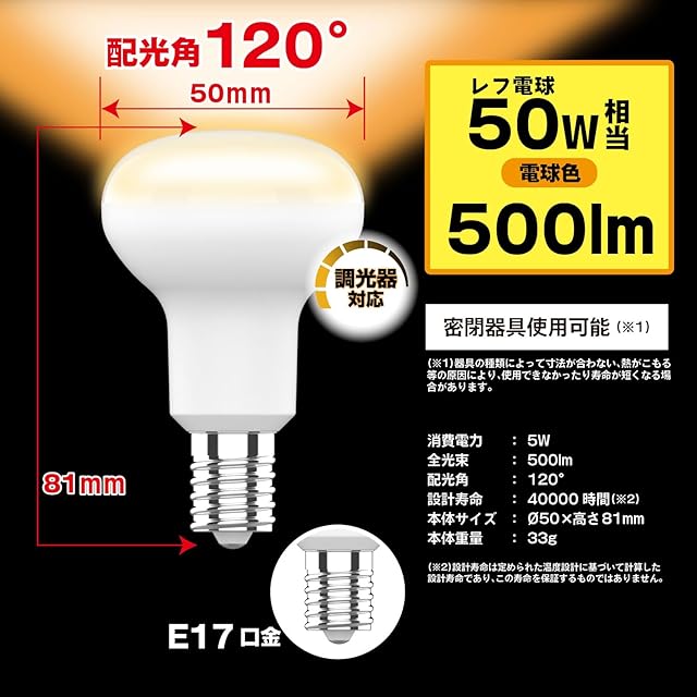 商品タイプ:E17-レフ電球形-50W調光器対応