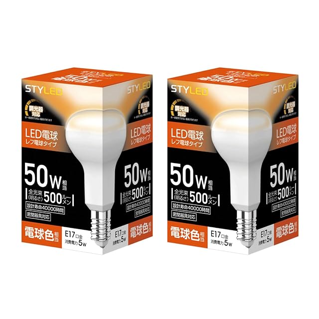 商品名:スタイルド LED電球 2個セット E17 調光器対応 電球色 50W相当 レフ電球形 密閉器具対応 HDR5D17L2