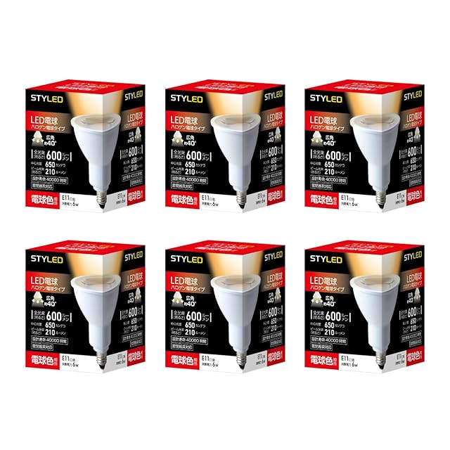 商品名:スタイルド LED電球 6個セット ハロゲン電球形 E11 電球色 6W スポットライト・広角タイプ(ビーム角40度) 密閉器具対応 HDR6E11L6