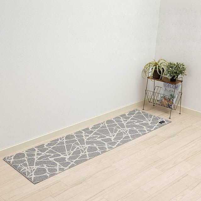 センコー(Senko) PENTELIKON キッチンマット インテリアマット 約50× 180cm ライトグレー ギリシャ製 薄手 床暖房 洗える 61780
