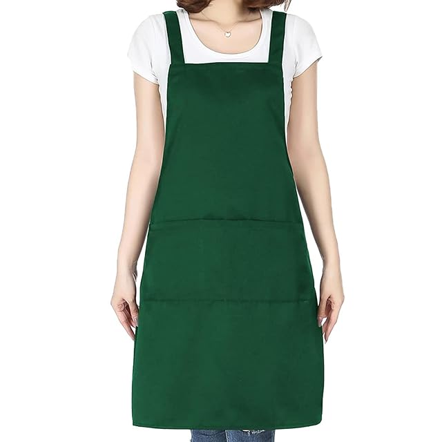 [cozycube] エプロン H型 首掛け シンプル 女性用 男性用 メンズ レデイース カフェエプロン 無地 おしゃれ 大容量ポケット 汚れにくい シワ防止 男女兼用 ノーアイロン 透けない ポケット付き 料理教室用 (グリーン(撥水加工))