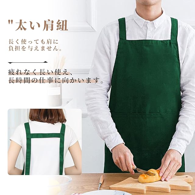 商品名:[cozycube] エプロン H型 首掛け シンプル 女性用 男性用 メンズ レデイース カフェエプロン 無地 おしゃれ 大容量ポケット 汚れにくい シワ防止 男女兼用 ノーアイロン 透けない ポケット付き 料理教室用 (グリーン(撥水加工))