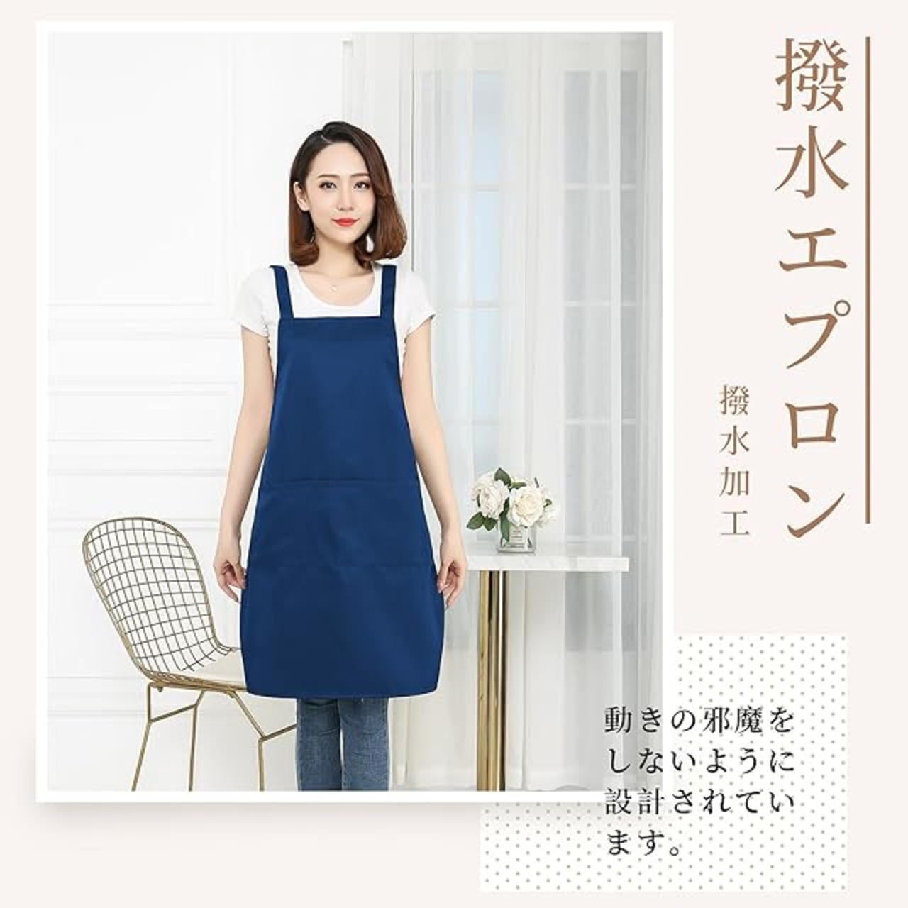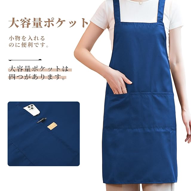 商品名:[cozycube] エプロン H型 首掛け シンプル 女性用 男性用 メンズ レデイース カフェエプロン 無地 おしゃれ 大容量ポケット 汚れにくい シワ防止 男女兼用 ノーアイロン 透けない ポケット付き 料理教室用 (ネイビー(撥水加工))