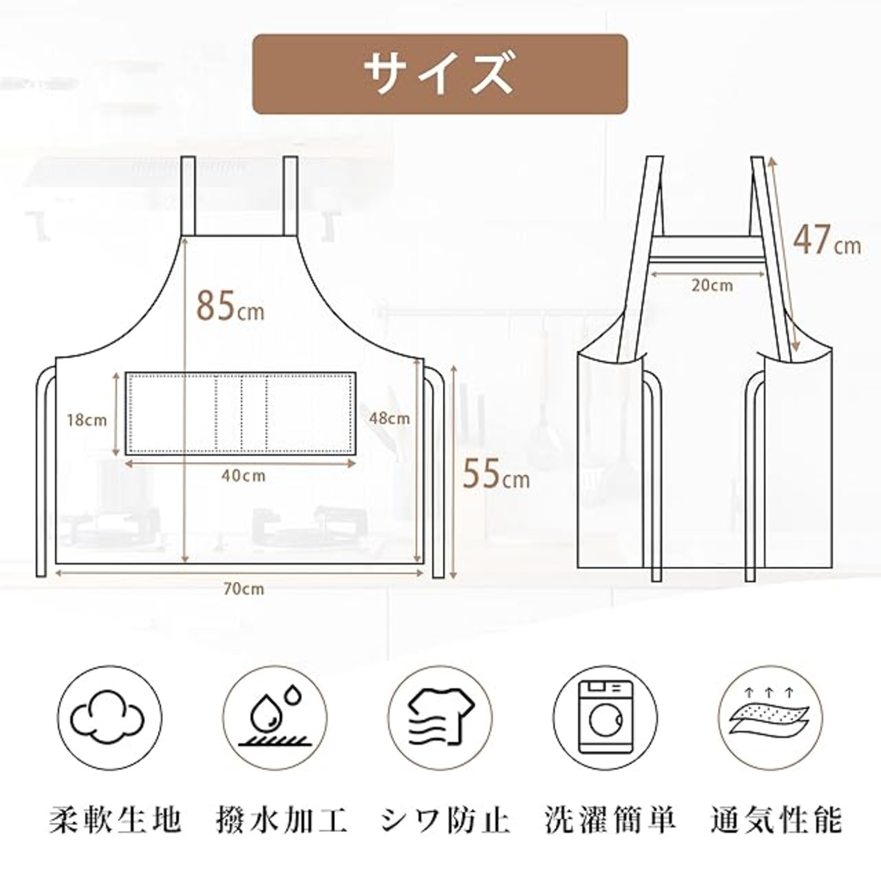 【幅広い使用シーン】撥水加工が施されているため、キッチン、ガーデニング、料理教室、ご家庭、カフェ、雑貨店、飲食店、DIYなど、さまざまな現場でご使用いただけます。ホールスタッフや店員などの仕事用ユニフォームとしてはもちろん、幼稚園・保育園の保育士、学校行事、絵画や陶芸など、多方面でご活用いただけます。