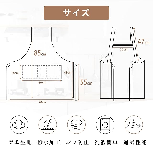 シンプルながら洗練されたデザインのエプロンは、男女問わず幅広い世代に人気のアイテムです。キッチンでの料理はもちろん、ガーデニングやDIY、カフェや雑貨店など、さまざまなシーンで活躍。大容量ポケット付きで実用性も抜群。透けにくく汚れに強い素材を使用し、ノーアイロンでシワもつきにくいため、お手入れも簡単です。見た目の美しさと機能性を兼ね備えた、毎日の作業が楽しくなるエプロンです。