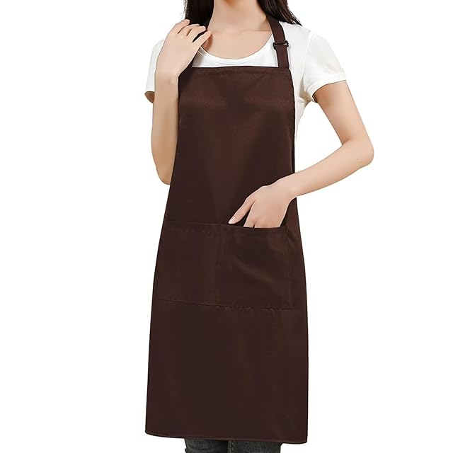 [cozycube] エプロン H型 首掛け シンプル 女性用 男性用 メンズ レデイース カフェエプロン 無地 おしゃれ 大容量ポケット 汚れにくい シワ防止 男女兼用 ノーアイロン 透けない ポケット付き 料理教室用 (ブラウン(首掛けタイプ))