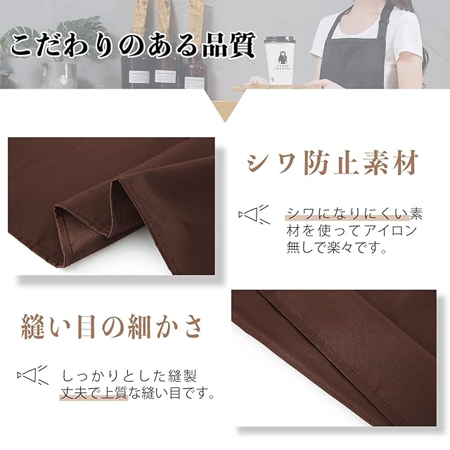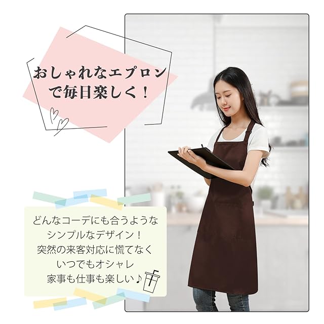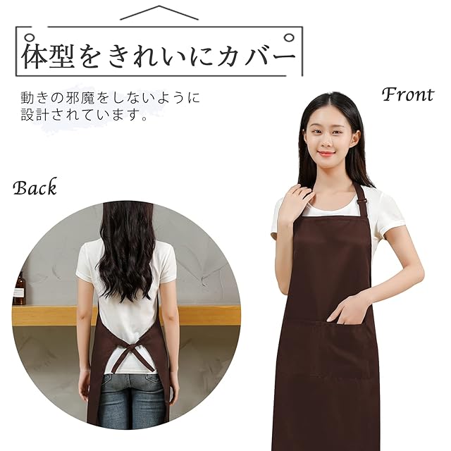 商品名:[cozycube] エプロン H型 首掛け シンプル 女性用 男性用 メンズ レデイース カフェエプロン 無地 おしゃれ 大容量ポケット 汚れにくい シワ防止 男女兼用 ノーアイロン 透けない ポケット付き 料理教室用 (ブラウン(首掛けタイプ))