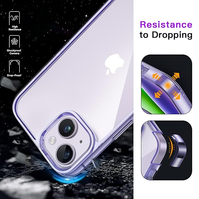 JETech iPhone 14 6.1インチ用 保護ケース 黄ばみなし 衝撃吸収 バンパーカバー 傷つけ防止 クリアバック (ディープパープル)