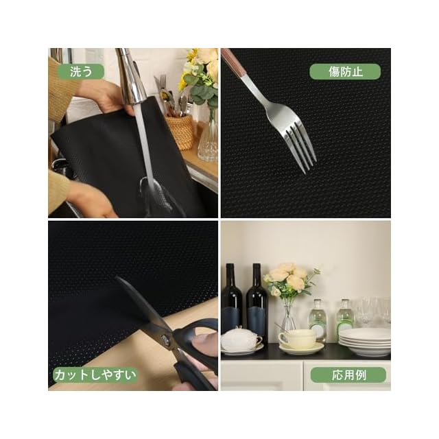 商品名:wohomuke 食器棚シート 60cmx6m 引き出しシートシェルフライナー キッチンシート EVA製 保護マット 滑り止め 抗菌 防カビ 収納シート 冷蔵庫マット 本棚マット 自由裁断 (ブラック,60x600cm)