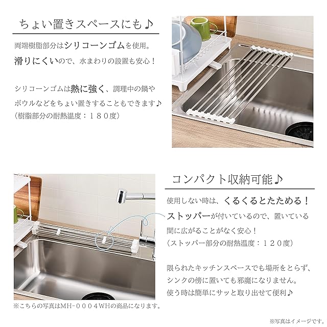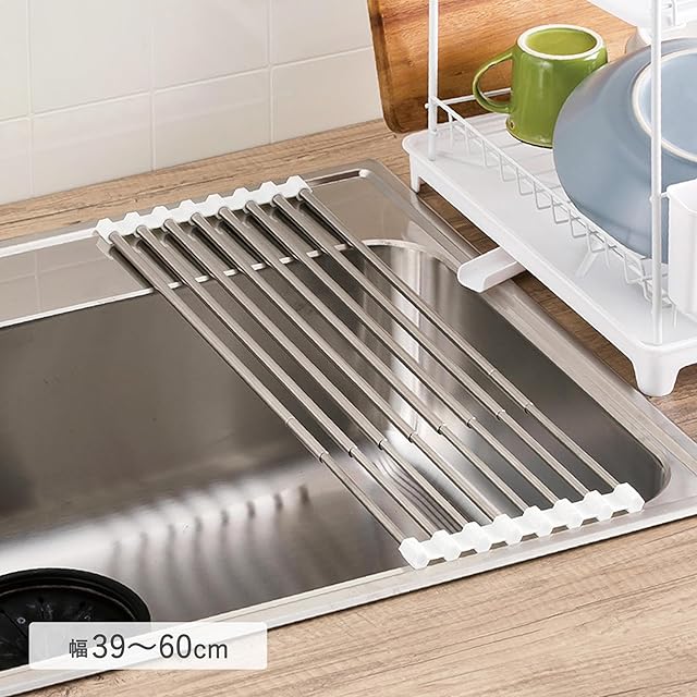 武田コーポレーション 【水切り・ラック・水切りラック・シンク】ホワイト 40×17×1cm くるくるたためる水切り 伸縮タイプ MH-5001WH レギュラー