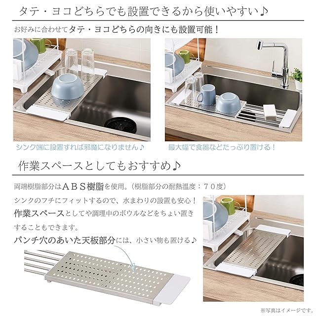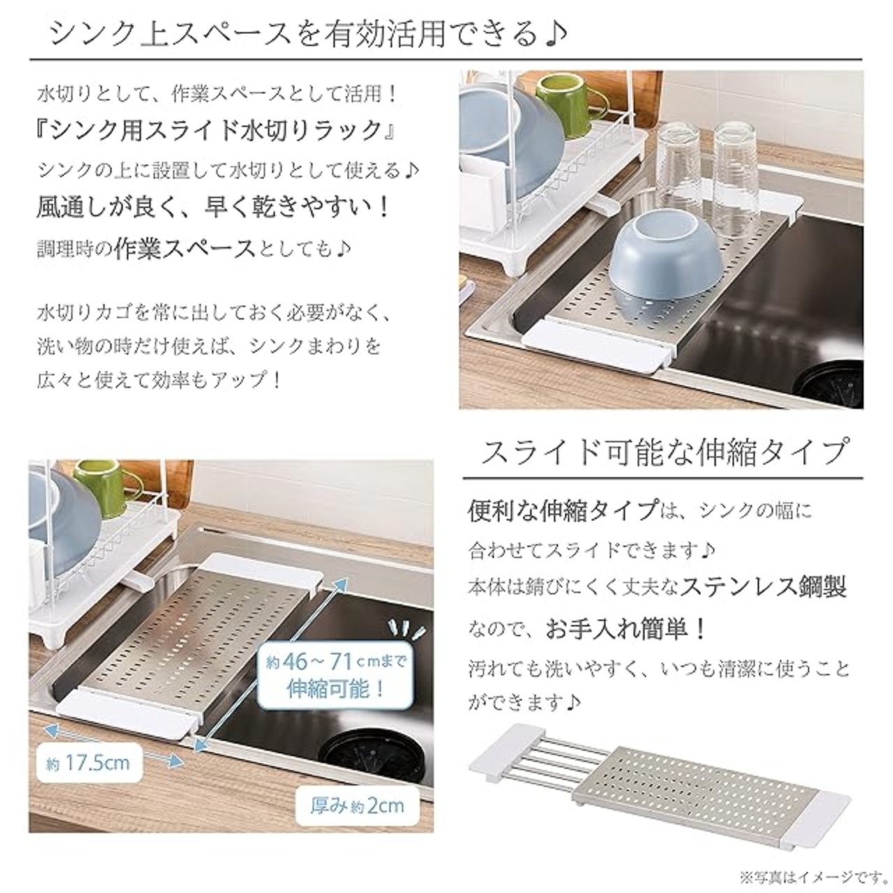 商品名:武田コーポレーション 水切り・ラック・洗い物 ホワイト 46×17.5×2cm シンク用スライド水切りラック MH-0003WH