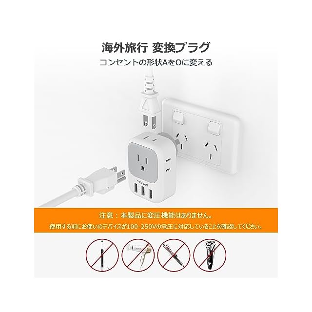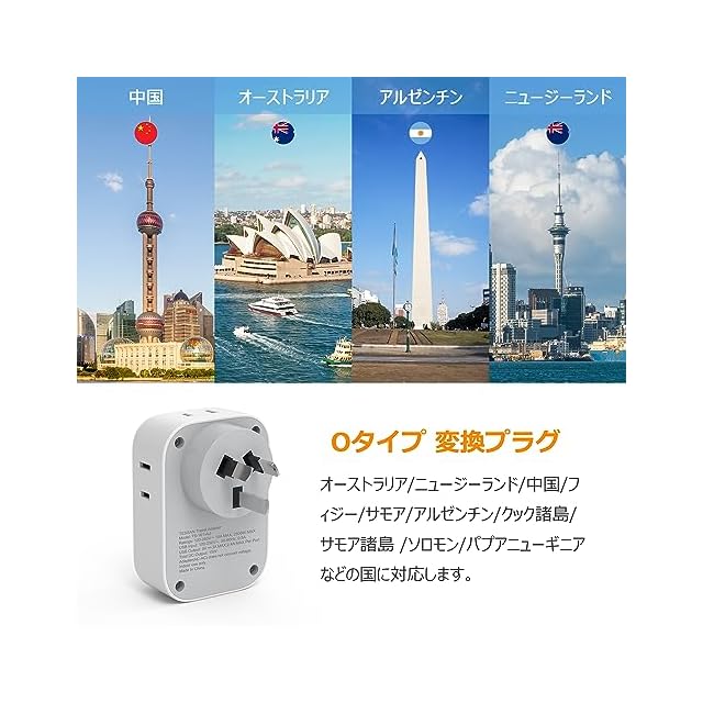 商品名:変換プラグ o型 海外旅行用変換プラグ Oタイプ 4個AC口 3USBポート TESSAN 変換アダプター 海外コンセント対応 充電器 オーストラリア/ニュージーランド/中国/アルゼンチンなどの国に対応 変換器
