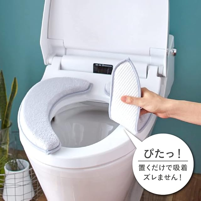 【取り付け・お手入れ簡単】便座に置くだけでピタッと吸着。ズレません。着脱が簡単。どのタイプの便座にも使用できます。(洗浄暖房型・O型・U型)洗濯機OK!繰り返し洗っても型崩れしにくい。吸着面にはアンモニア消臭効果があり、お手入れ簡単で清潔。
