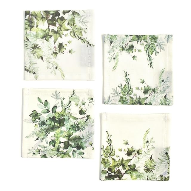 スタイルデコール(STYLE Decor) コースター 綿100% おしゃれ 布 4枚セット 洗える 北欧 グリーンリーブス W3005300