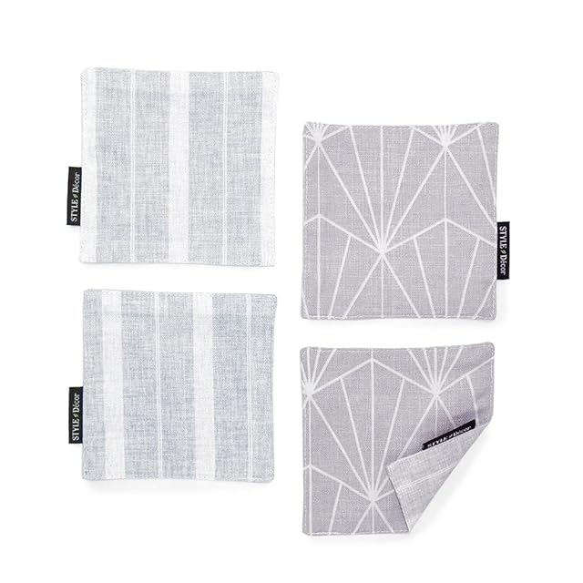 スタイルデコール(STYLE Decor) コースター リバーシブル おしゃれ 布 4枚セット 洗える 北欧 グレー シンプル ライン W3001220