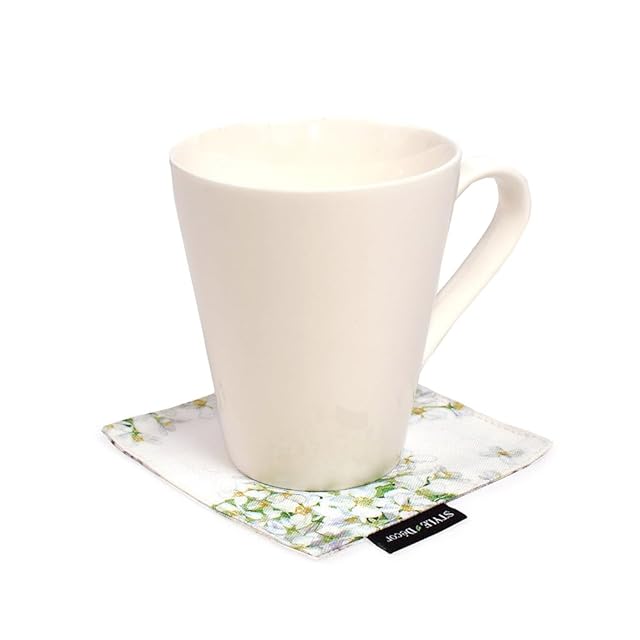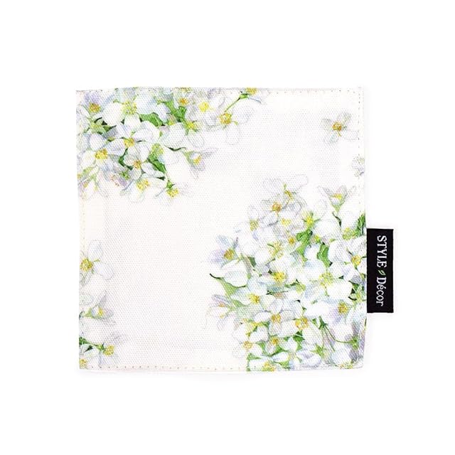 商品名:スタイルデコール(STYLE Decor) コースター リバーシブル おしゃれ 布 4枚セット 洗える 北欧 花柄 ジャスミン ホワイト W3004420