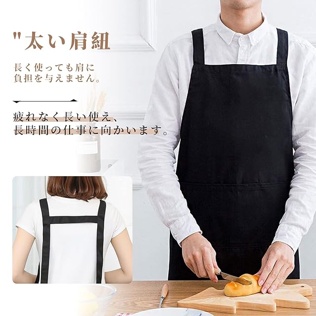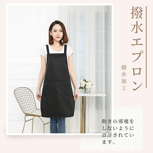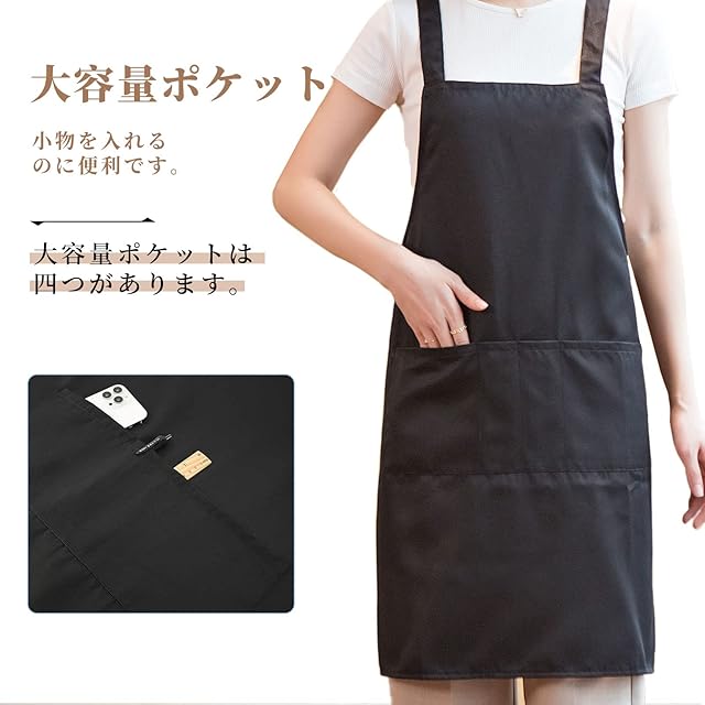 商品名:[cozycube] エプロン H型 首掛け シンプル 女性用 男性用 メンズ レデイース カフェエプロン 無地 おしゃれ 大容量ポケット 汚れにくい シワ防止 男女兼用 ノーアイロン 透けない ポケット付き 料理教室用 (ブラック(撥水加工))