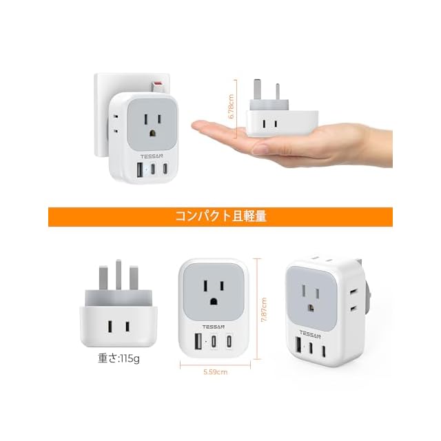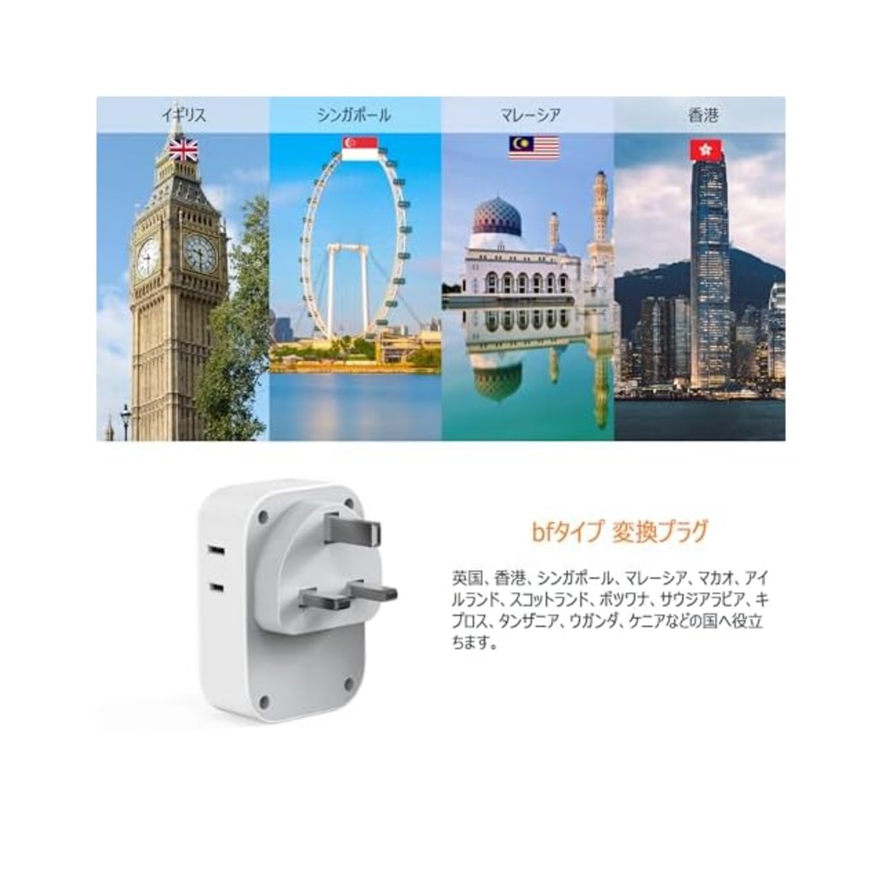 商品名:海外 bfタイプ 変換プラグ USB-C付き TESSAN 2個type-c 2個USB-A 4個AC差込口 変換器 電源変換アダプター イギリス シンガポール 香港 マレーシア マカオなどコンセント変換対応 出張 旅行 便利グッズ