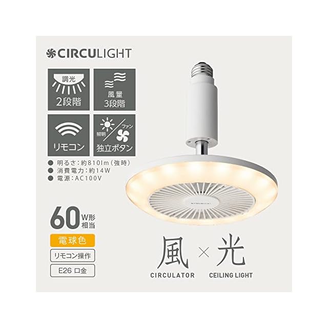 商品名:【現行モデルは風量アップ】ドウシシャ サーキュライト ソケットシリーズ E26モデル 電球色 60W相当 風量3段階 リモコン付き ホワイト