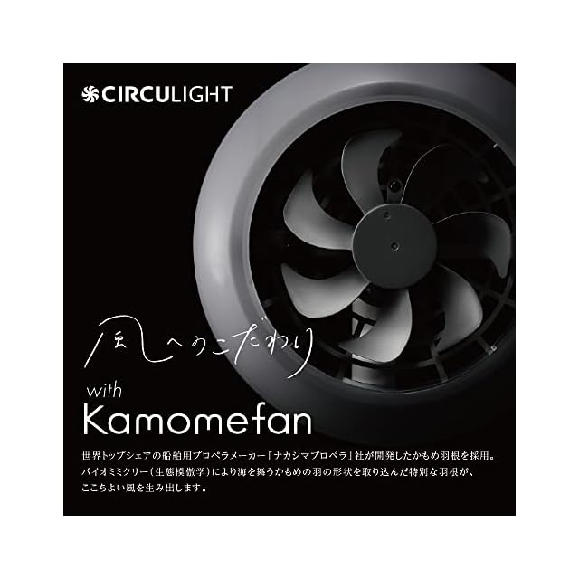 風へのこだわり。世界トップシェアの船舶用プロペラメーカー「ナカシマプロペラ」社が開発したかもめ羽根お採用。バイオミミクリー(生態模倣学)により海を舞うかもめの羽根の形状を取り込んだ特別な羽根が、ここちよい風を生み出します。