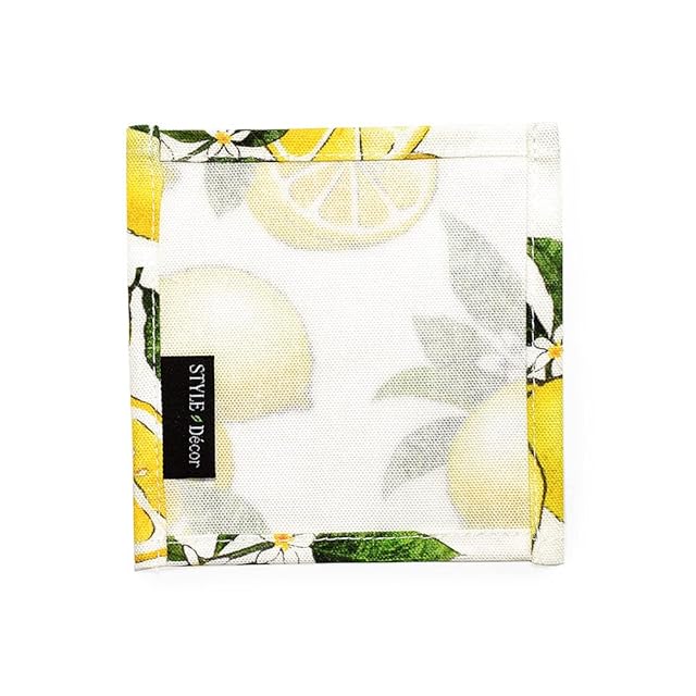 スタイルデコール(STYLE Decor) コースター 綿100% おしゃれ 布 4枚セット 洗える 北欧 レモン イエロー フルーツ柄 W3001800
