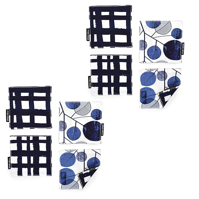 スタイルデコール(STYLE Decor) コースター リバーシブル 8枚セット ネイビーリーフ 綿100% おしゃれ 布 洗える スタイルデコール W3002222