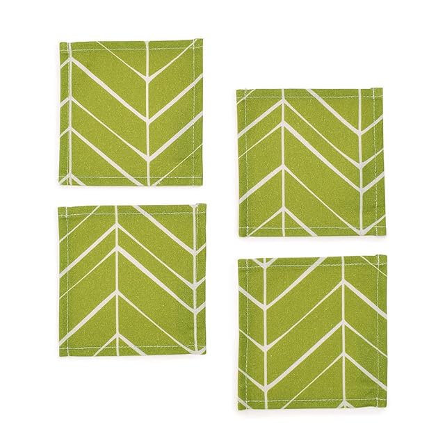 スタイルデコール(STYLE Decor) コースター 綿100% おしゃれ 布 4枚セット 洗える 北欧 グリーン フェザー柄 幾何学 W3002400