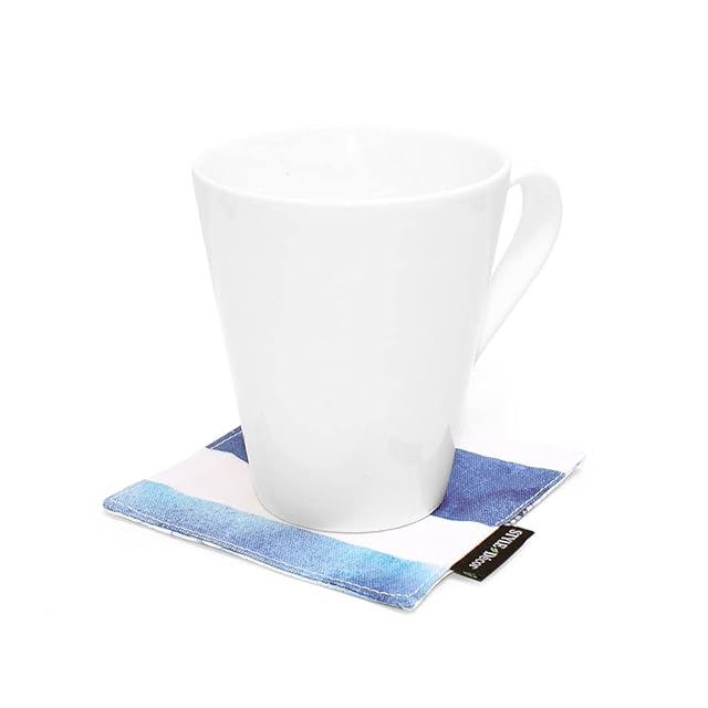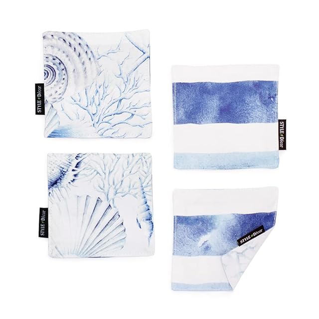 商品名:コースター リバーシブル おしゃれ 布 4枚セット 洗える 北欧 マリン ブルー ライン ボーダー スタイルデコール W3000320
