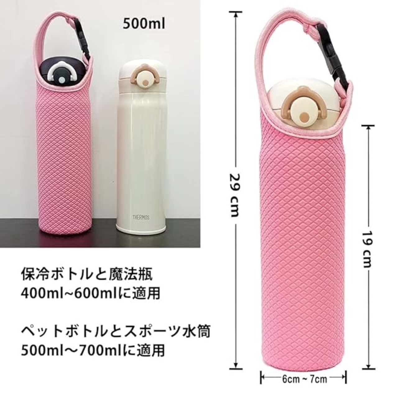 【水筒とペットボトルに適用】弾力性がある特殊な材料で作られて、ボトルのサイズに合わせて広げることができます。ボトル底の直径は6cmから7cmに適用、400ml~600mlの魔法瓶と保温ボトル、500ml~700mlのペットボトルとスポーツ水筒に適用。