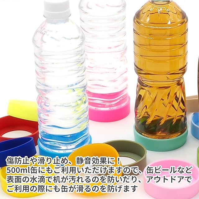 傷防止や滑り止め、静音効果に! 500ml缶にもご利用いただけますので、缶ビールなど表面の水滴で机が汚れるのを防いだり、アウトドアでご利用の際にも缶が滑るのを防げます