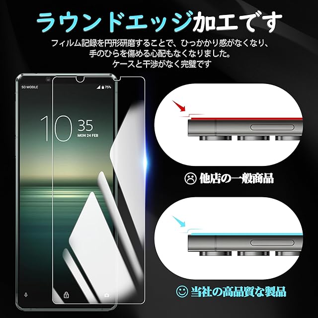 【対応機種】:Sony Xperia 1 II SO-51A/SOG01 専用 ガラスフィルム。【注意】この電話の画面の端は湾曲しているため、保護フィルムのサイズが丁度良い場合、しっかりと貼り付けられず、白いエッジやシェルとの干渉などの問題があるため、保護フィルムは画面よりも小さいです。