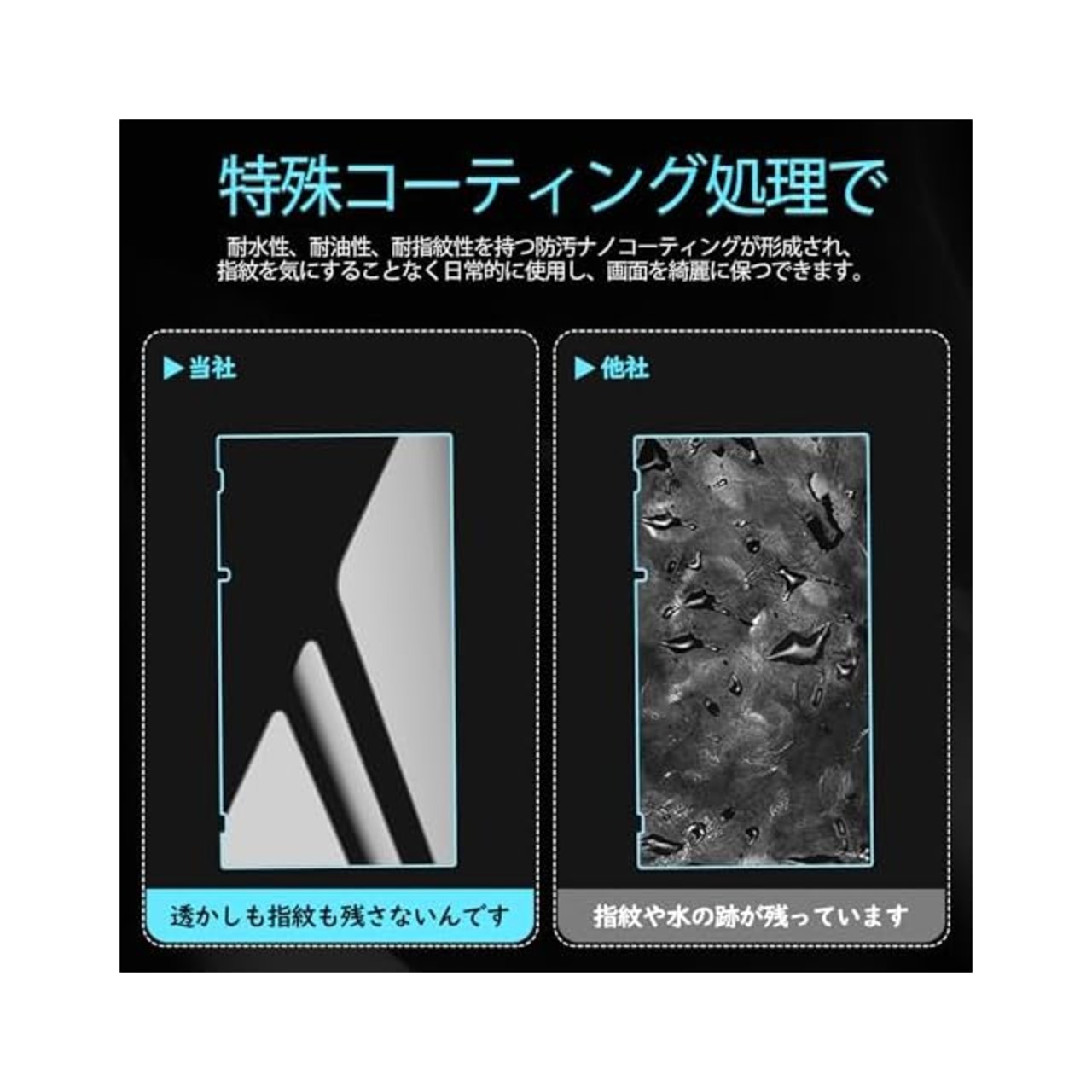 【指紋防止、高感度タッチ】ガラスフィルムには撥油コーティングが施されており、指紋や汚れなどに強くなめらかな操作感を実現、付着した汚れなどは簡単に拭きとれます。こちらは高耐久撥油コーティングが施され、つるつるな滑り感を実現!ゲームしても渋くなし!